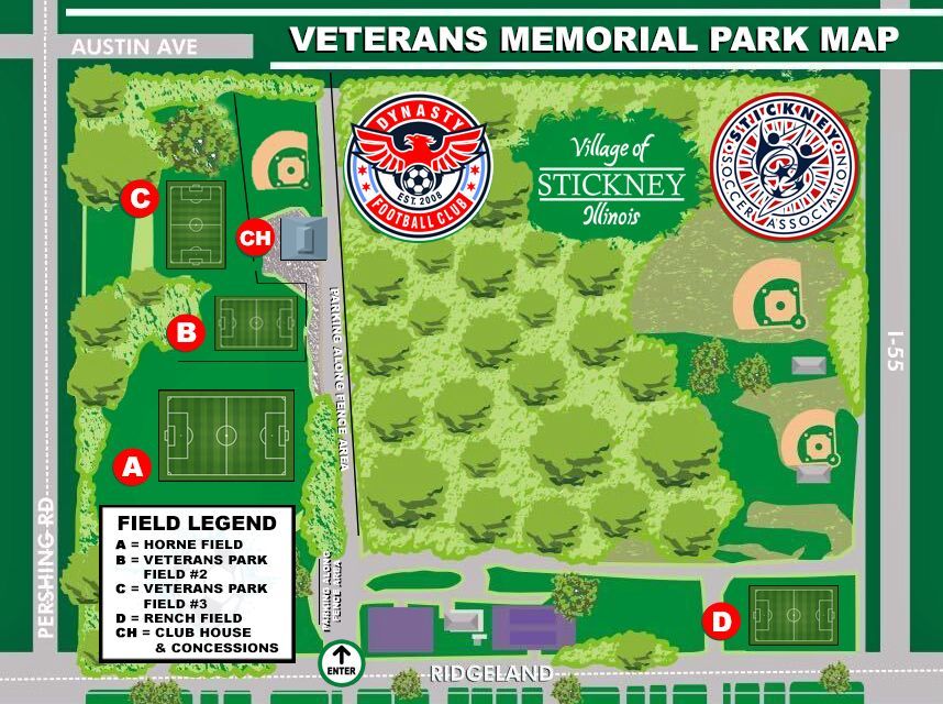 Chicago Dynasty FC Fields are located in the beautiful city of Stickney Illinois. It is easily accessible from major expressways in the southwest suburbs; minutes away from I-55.